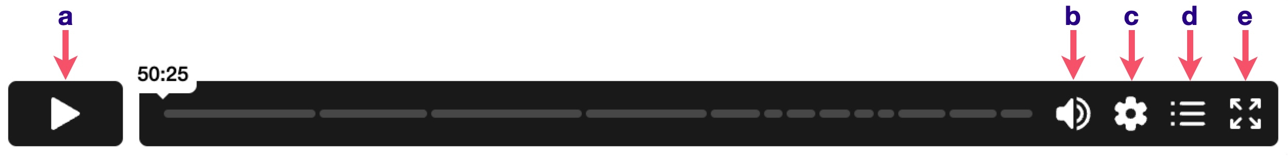 d. Some videos, like webinars, have chapter headings. Clicking this button allows you to view a specific chapter, a useful feature when reviewing a video.